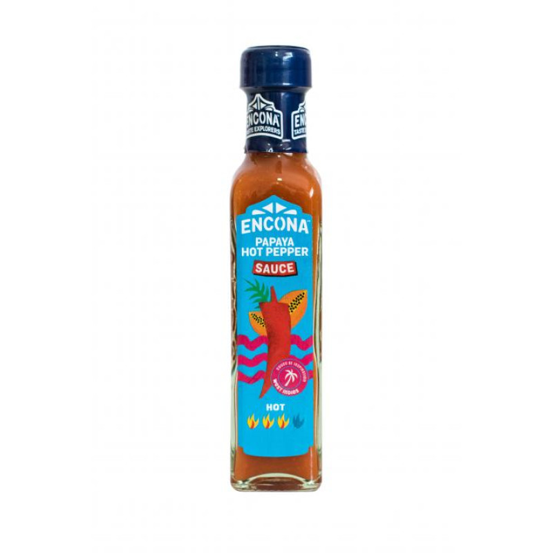 Sosul de ardei iute Encona Papaya Hot Pepper este un sos specific bucatariei caraibeana, perfect pentru a adauga putina „caldura” la masa. Este un tip de sos fructat, aromat de concentratul de papaya detinut in compozitie. Este insa si un sos foarte iute, facut dintr-un amestec de ardei iuti Habanero si Scotch Bonnet – in proportie de aproximativ 35%, otet distilat, zahar, sare si chiar si mustar, la care se adauga concentratul de papaya specific.